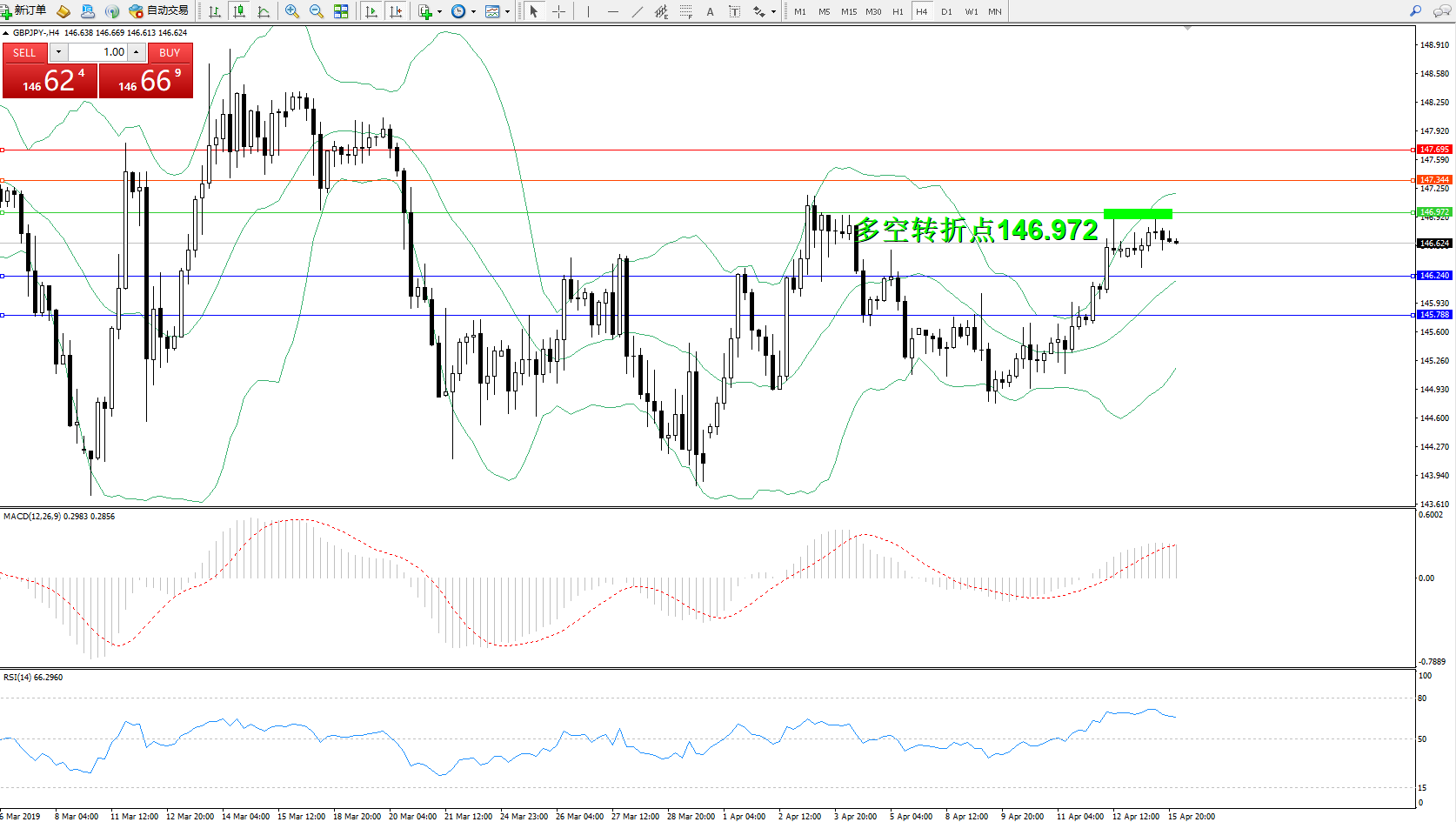 交易策略:146.972下方看跌,目标146.240145.788