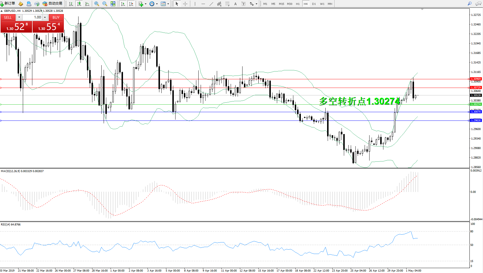 交易策略:1.30274上方看涨,目标1.307291.30969