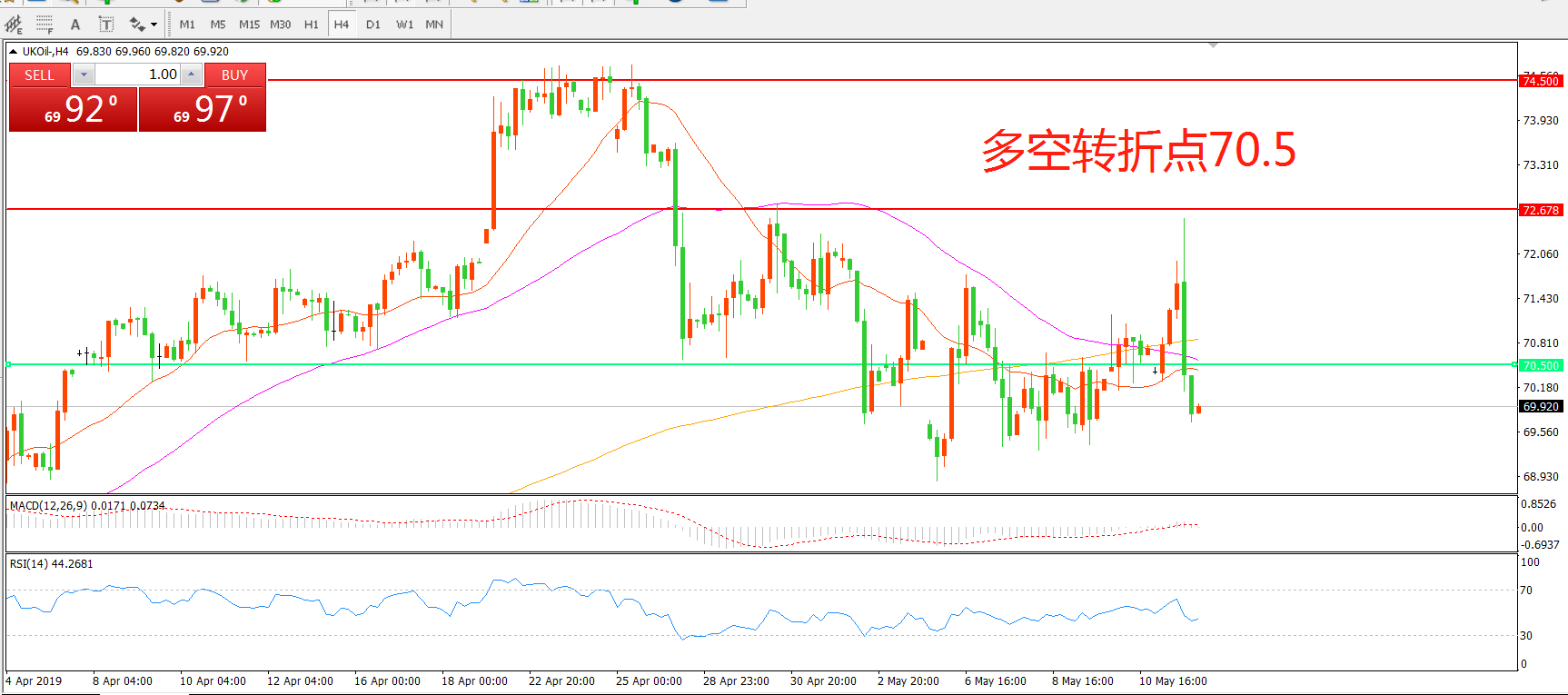 多空转折点:70.50