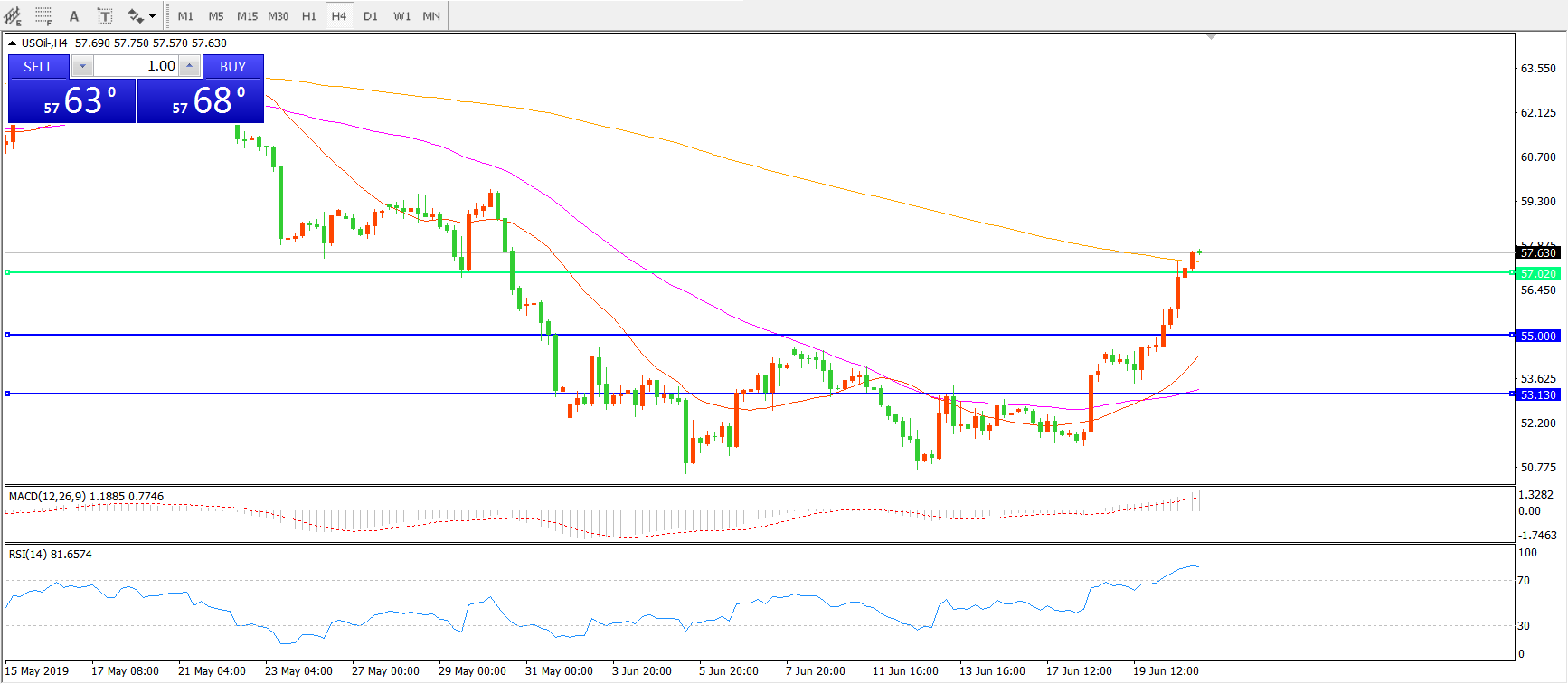 交易策略:在57.00之上看涨,目标59.00    61.50