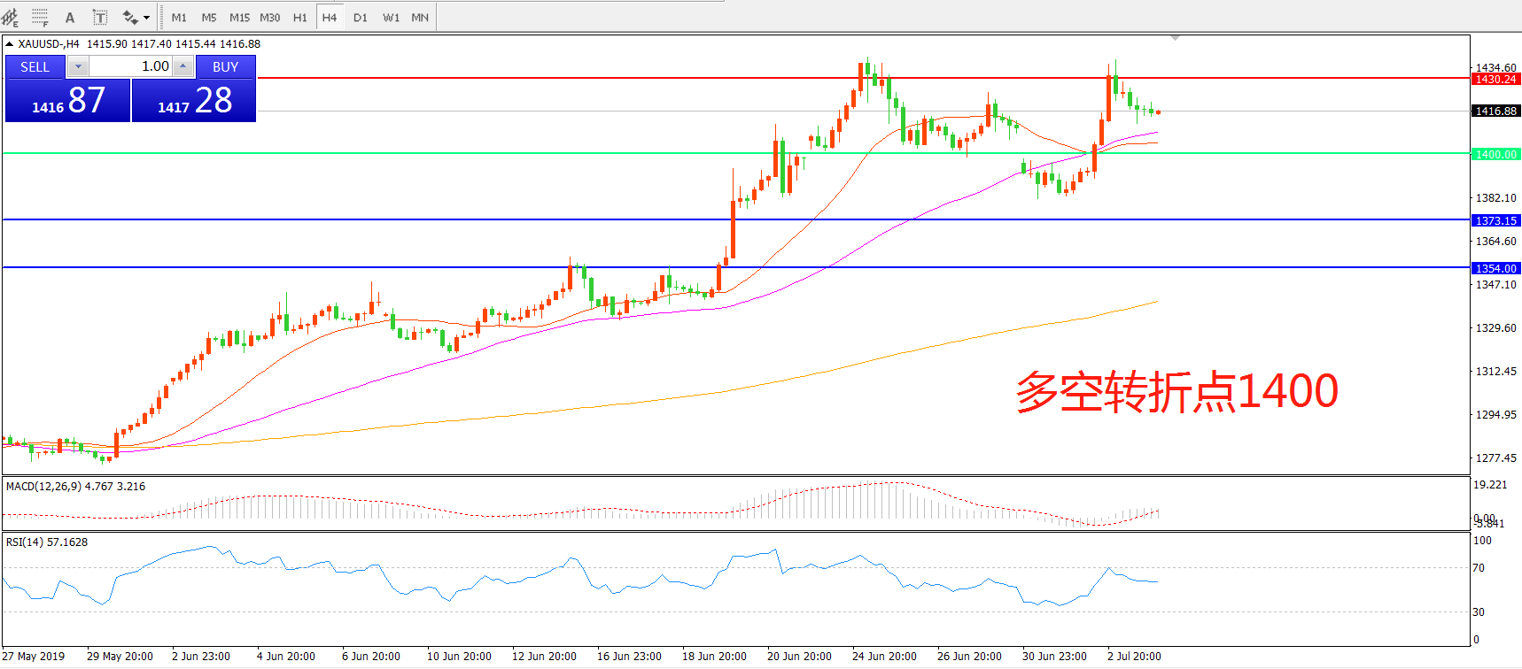多空转折点:1400.00