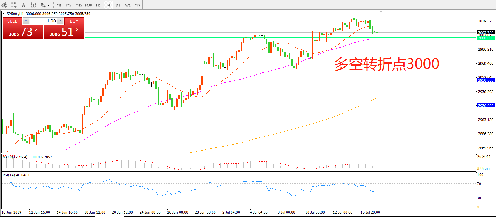 多空转折点:3000.00