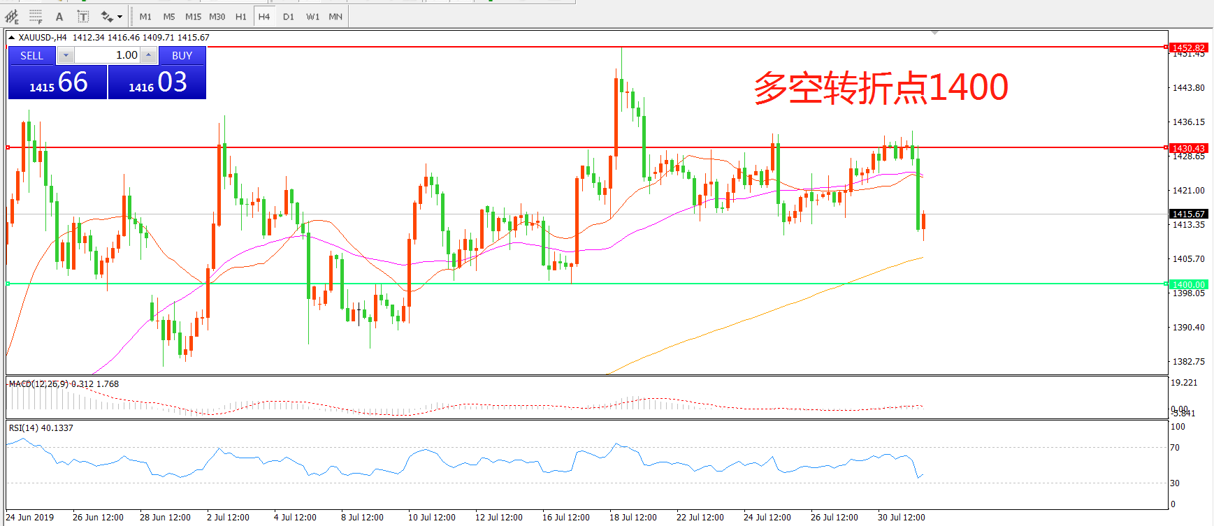多空转折点:1400.00