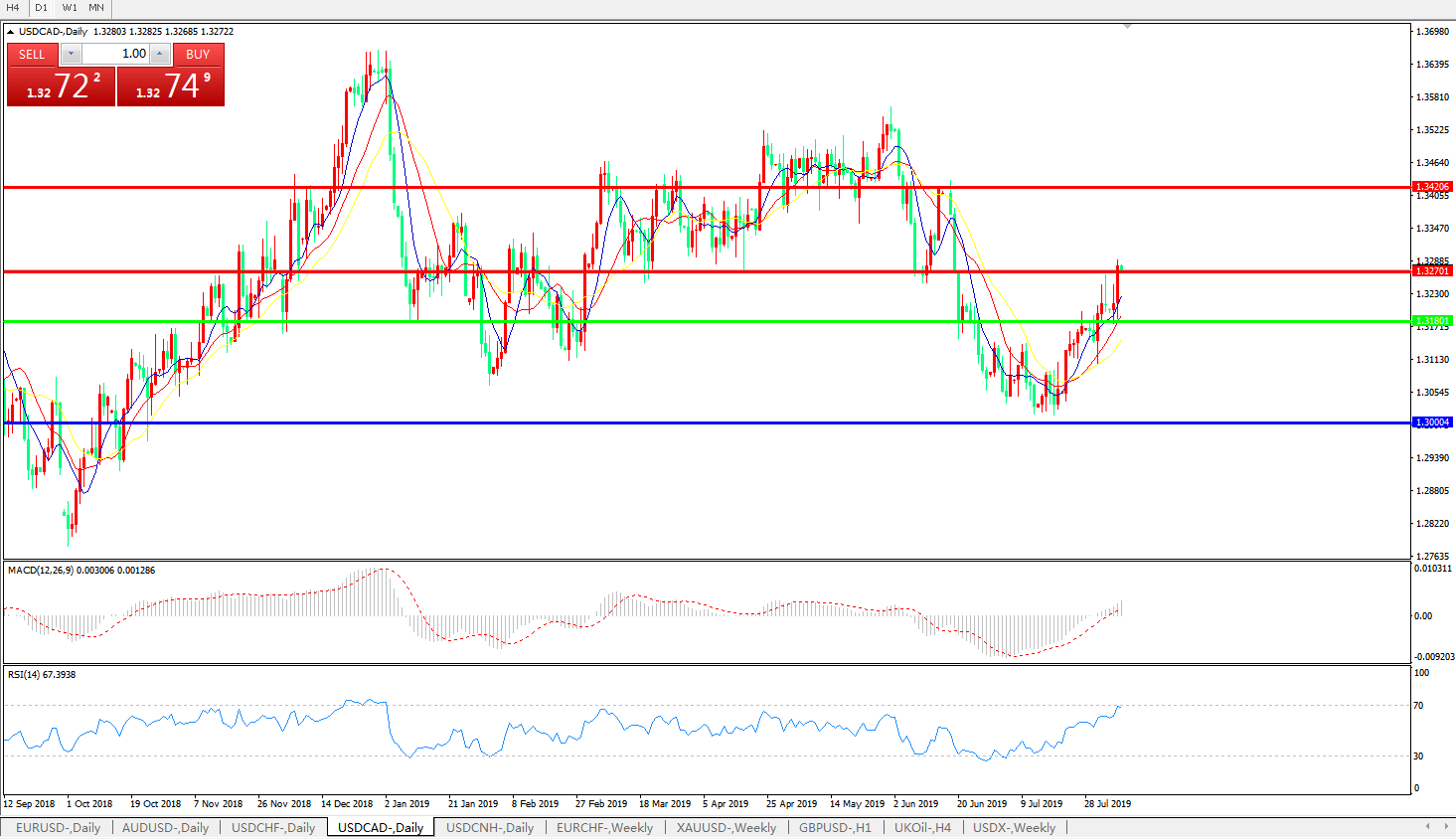 美元兑加元USDCAD    日线图: