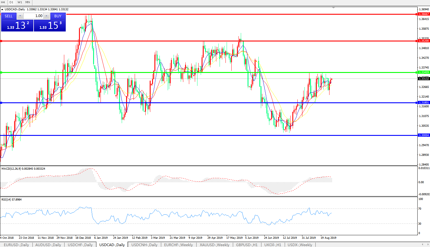 交易策略:1.3345之下,看跌,目标价位为1.3180,然后为1.3000。
