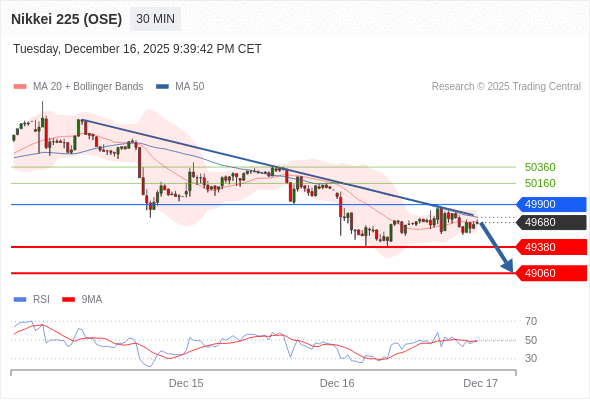 交易策略: 在 49900 之下,看跌,目标价位为 49380 ,然后为 49060 。