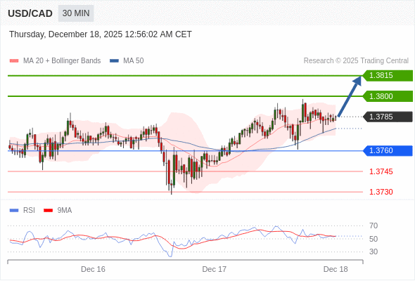 在 1.3760 之上,看涨,目标价位为 1.3800 ,然后为 1.3815 。