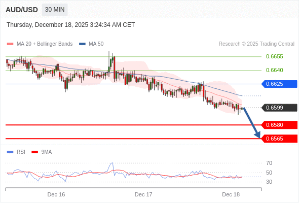 交易策略: 在 0.6625 之下,看跌,目标价位为 0.6580 ,然后为 0.6565 。