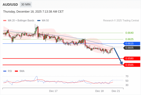 在 0.6615 之下,看跌,目标价位为 0.6580 ,然后为 0.6565 。