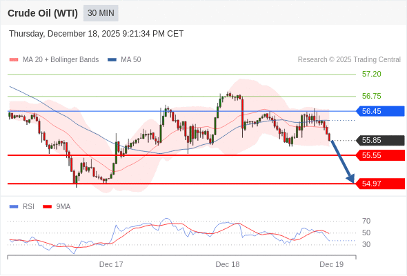 在 56.45 之下,看跌,目标价位为 55.55 ,然后为 54.97 。