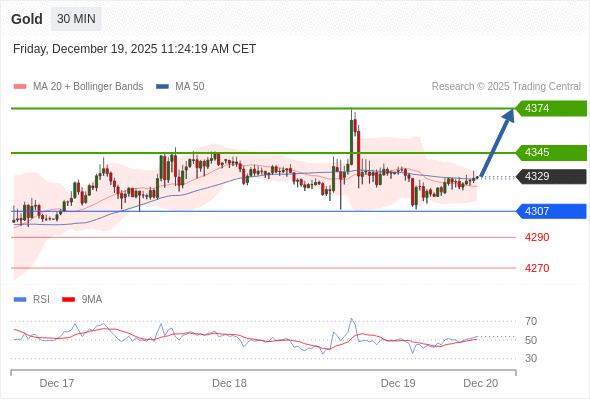 在 4307 之上,看涨,目标价位为 4345 ,然后为 4374 。