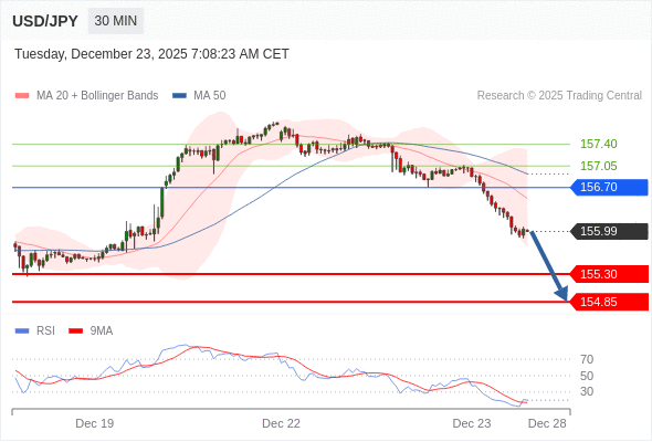 在 156.70 之下,看跌,目标价位为 155.30 ,然后为 154.85 。