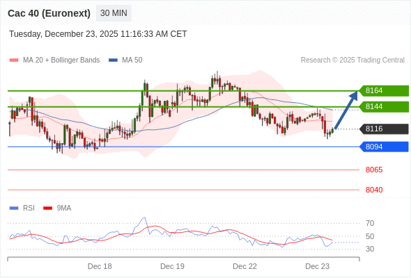 法国CAC指数期货 (Euronext) (F6) 当日内: 超短线(当日内)支撑位在8094附近。
