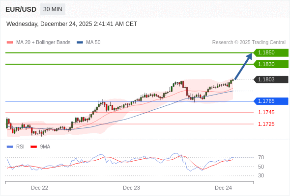 在 1.1765 之上,看涨,目标价位为 1.1830 ,然后为 1.1850 。