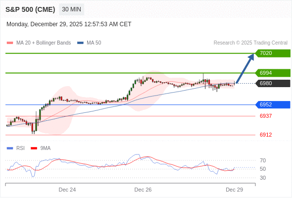 在 6952 之上,看涨,目标价位为 6994 ,然后为 7020 。