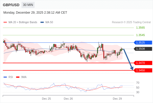 在 1.3525 之下,看跌,目标价位为 1.3470 ,然后为 1.3450 。