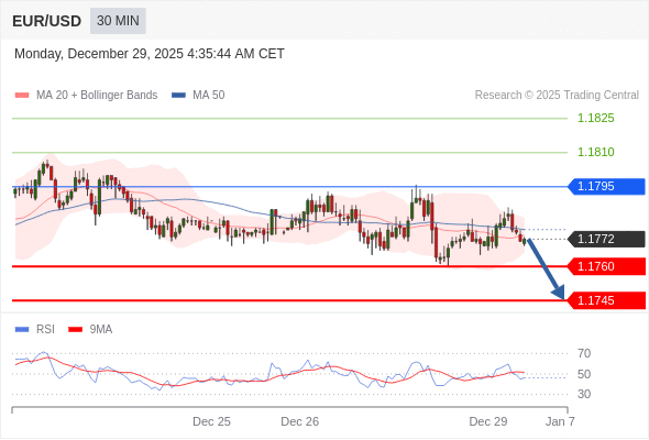 在 1.1795 之下,看跌,目标价位为 1.1760 ,然后为 1.1745 。