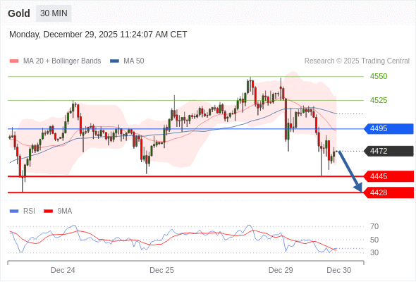 在 4495 之下,看跌,目标价位为 4445 ,然后为 4428 。