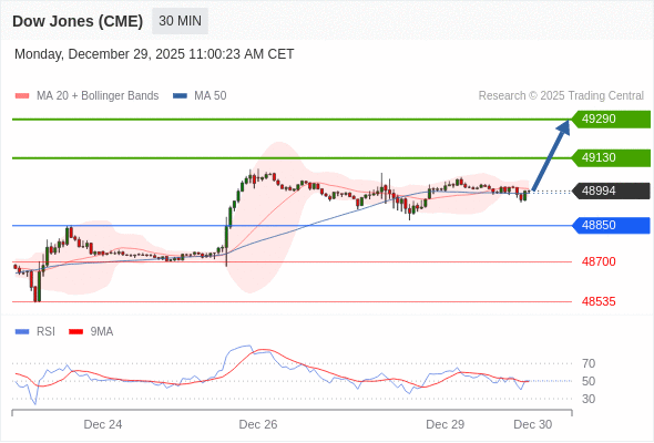 在 48850 之上,看涨,目标价位为 49130 ,然后为 49290 。