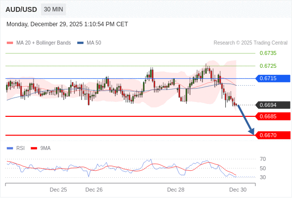 在 0.6715 之下,看跌,目标价位为 0.6685 ,然后为 0.6670 。
