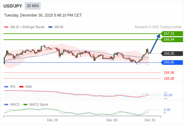 交易策略: 看涨,当 155.85 为支撑位。
