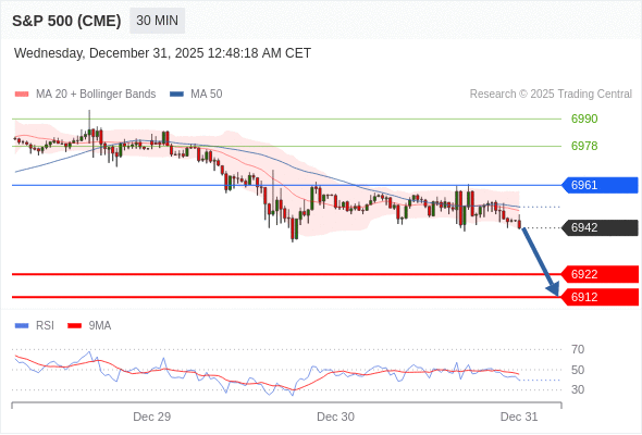 在 6961 之下,看跌,目标价位为 6922 ,然后为 6912 。
