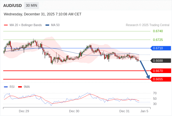 在 0.6710 之下,看跌,目标价位为 0.6670 ,然后为 0.6655 。