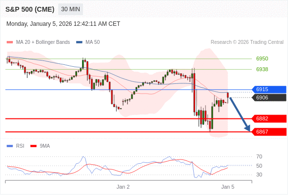 在 6915 之下,看跌,目标价位为 6882 ,然后为 6867 。