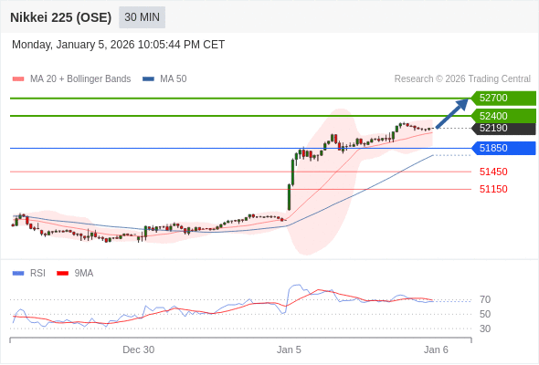 在 51850 之上,看涨,目标价位为 52400 ,然后为 52700 。