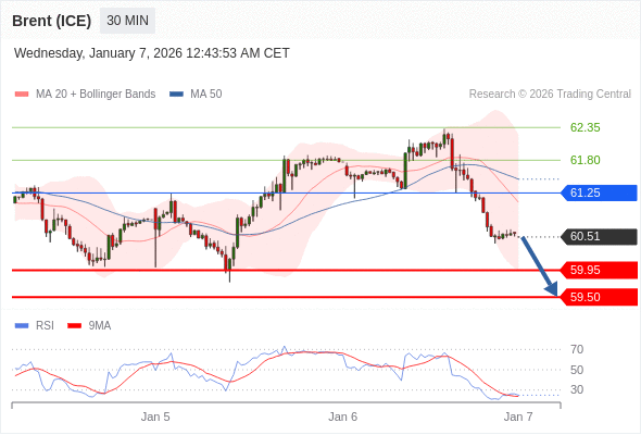 交易策略: 在 61.25 之下,看跌,目标价位为 59.95 ,然后为 59.50 。