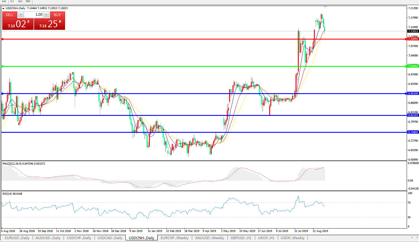 交易策略: 在7.0000之上,看涨,目标价位为7.1000,然后为7.2000。