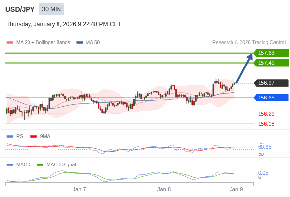 美元/日元 当日内 : 看涨,当 156.65 为支撑位。