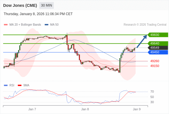 在 49450 之上,看涨,目标价位为 49640 ,然后为 49830 。
