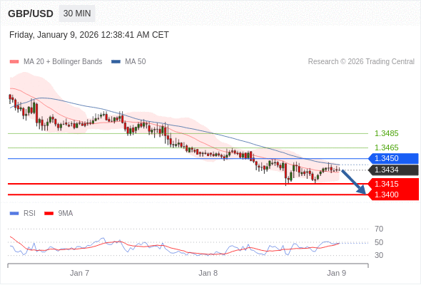 交易策略: 在 1.3450 之下,看跌,目标价位为 1.3415 ,然后为 1.3400 。