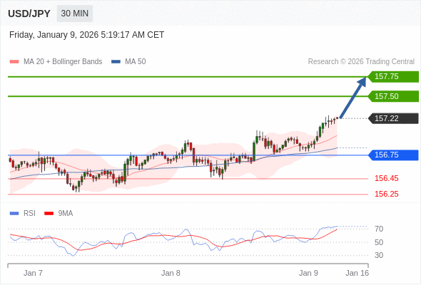 在 156.75 之上,看涨,目标价位为 157.50 ,然后为 157.75 。
