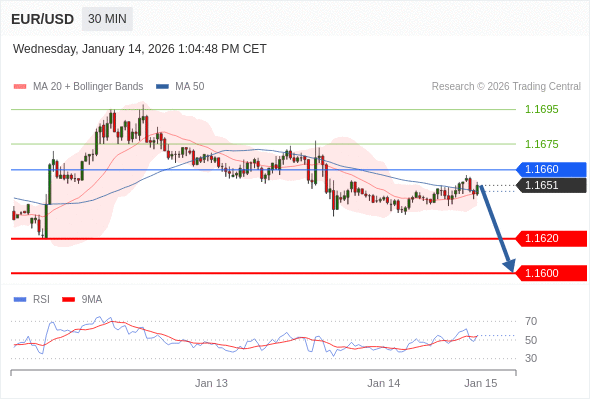 在 1.1660 之下,看跌,目标价位为 1.1620 ,然后为 1.1600 。