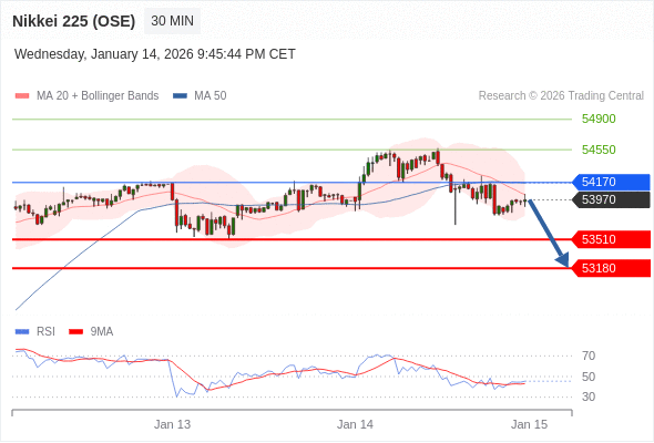 在 54170 之下,看跌,目标价位为 53510 ,然后为 53180 。