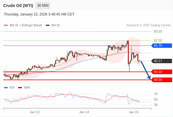 在 61.70 之下,看跌,目标价位为 59.10 ,然后为 58.30 。