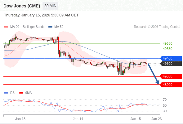 在 49400 之下,看跌,目标价位为 49060 ,然后为 48900 。