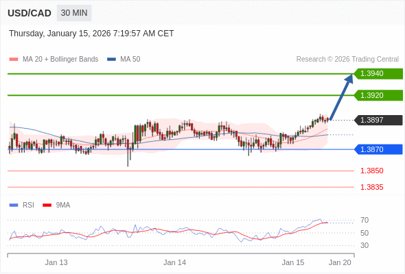 在 1.3870 之上,看涨,目标价位为 1.3920 ,然后为 1.3940 。