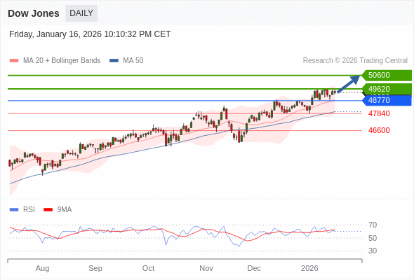 Dow Jones 短线: 目标位为50600。