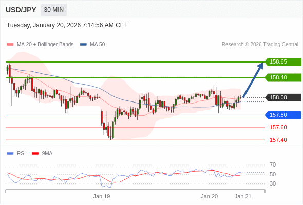在 157.80 之上,看涨,目标价位为 158.40 ,然后为 158.65 。