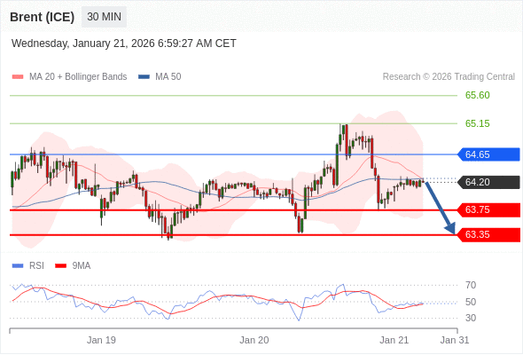 在 64.65 之下,看跌,目标价位为 63.75 ,然后为 63.35 。