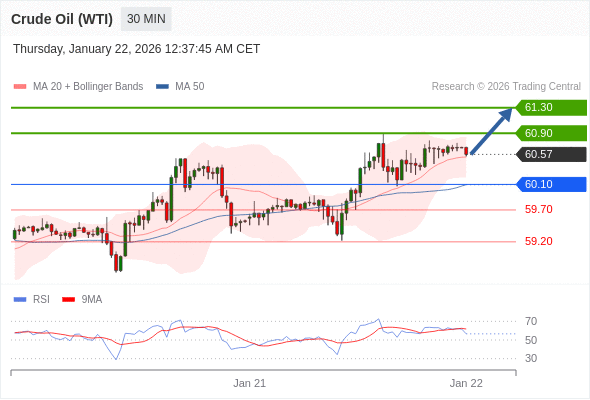 在 60.10 之上,看涨,目标价位为 60.90 ,然后为 61.30 。