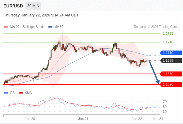 交易策略: 在 1.1710 之下,看跌,目标价位为 1.1650 ,然后为 1.1620 。