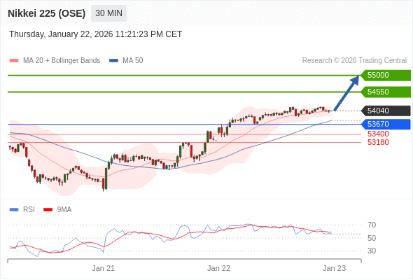 日经225股指期货 (OSE) 当日内: 期待54550。