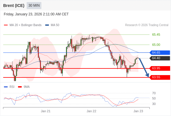 在 64.65 之下,看跌,目标价位为 63.95 ,然后为 63.55 。