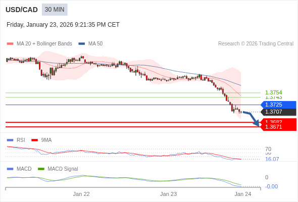 美元/加元 当日内 : RSI是超卖的