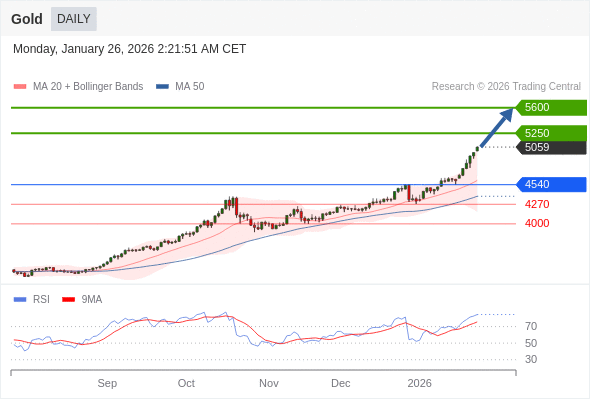 交易策略: 在 4540 之上,看涨,目标价位为 5250 ,然后为 5600 。