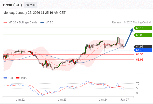 在 64.70 之上,看涨,目标价位为 65.90 ,然后为 66.45 。